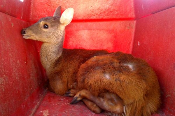 Cervo é resgatado após ser perseguido e ferido por cães em Bauru