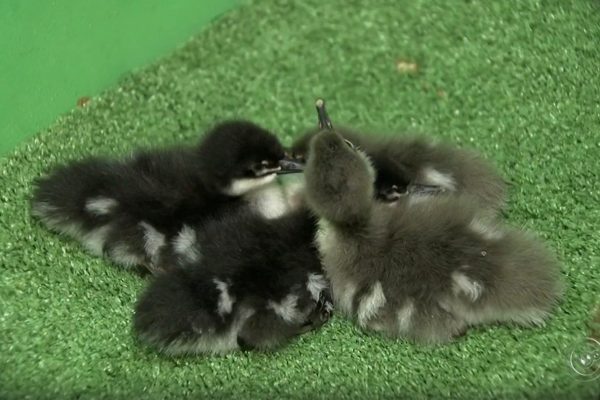 Pesquisadores acreditam que só existem 200 aves na natureza. Câmera dentro de chocadeira mostra quando os filhotes de pato mergulhão saíram dos ovos no zoo de…