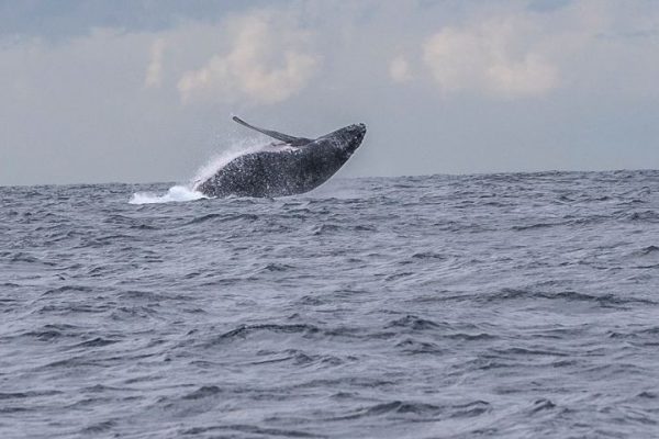 Baleias jubarte dão show para pesquisadores no mar do ES