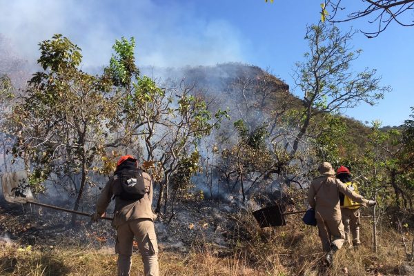 Bombeiros combatem fogo em unidade de conservação e no Parque de Chapada dos Guimarães (MT)