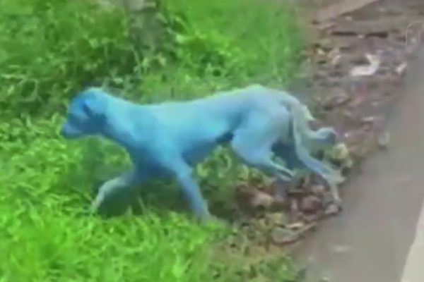 Cães ficam azuis após contato com resíduos químicos em rio na Índia