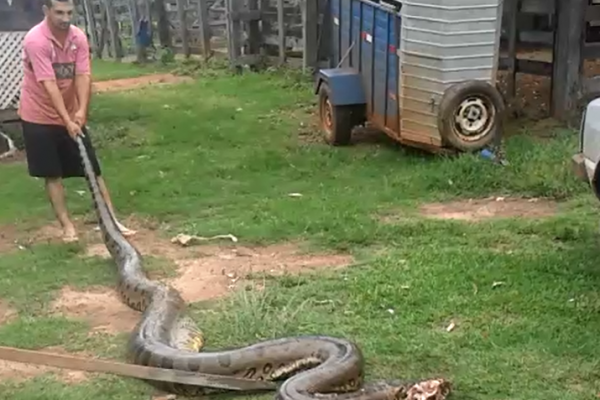 Sucuri surpreende moradores ao aparecer em bairro de Urupês
