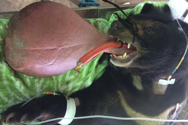 A operação para remover a língua de três quilos do urso Nyan htoo