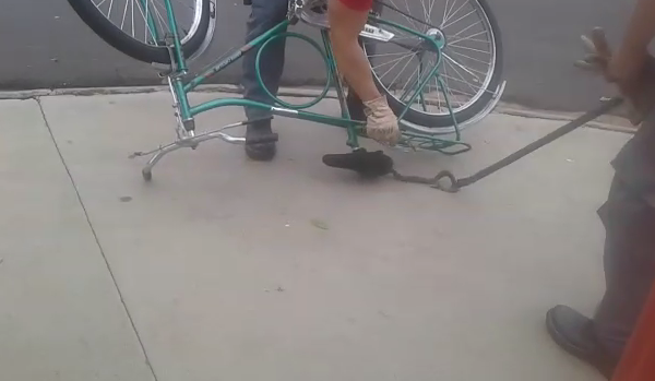 Bombeiros resgatam filhote de jiboia enrolado em banco de bicicleta