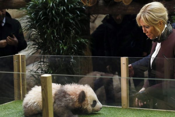 Brigitte Macron faz discurso de estreia e batiza 1º panda nascido na França