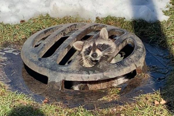 Guaxinim é resgatado após entalar cabeça em tampa de bueiro nos EUA