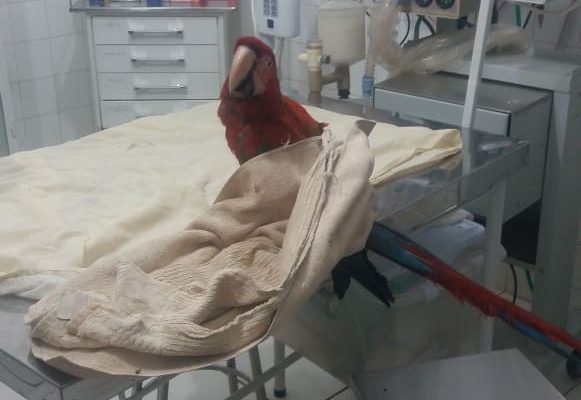Arara vermelha é resgatada na Rodovia BR-153 em Icém