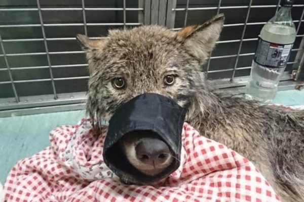 Operários resgatam ‘cão’ de rio congelado e descobrem que era um lobo