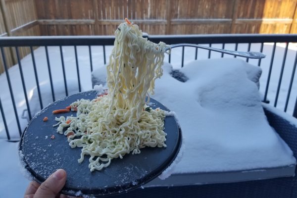 Mulher filma macarrão instantâneo que congelou em frio de -32°C no Canadá; VÍDEO