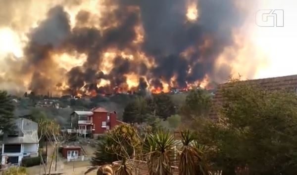 Incêndio florestal se aproxima de casas na Argentina e assusta moradores; veja vídeo