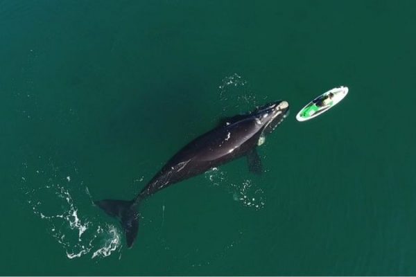 A baleia-franca-austral é amigável, mas cenas como essa raramente são registradas. VÍDEO: Imagem mostra baleia nadando ao lado e embaixo de embarcação na Argentina Analía Giorgetti remava…