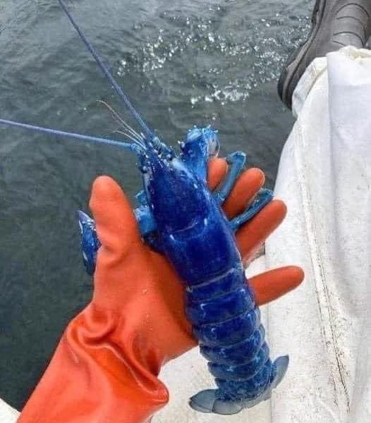 Segundo ditado entre pescadores, a chance de encontrar uma dessas é de 1 em cada 2 bilhões. Lagosta azul pescada no mar de Portland, nos EUA Redes sociais/@LarsJohanL Um homem encontrou uma lagosta azul no início do mês de julho enquanto navegava pela costa de Portland, nos EUA. O caso,