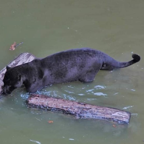 Onça-preta rara é flagrada tomando banho em rio de Rondônia