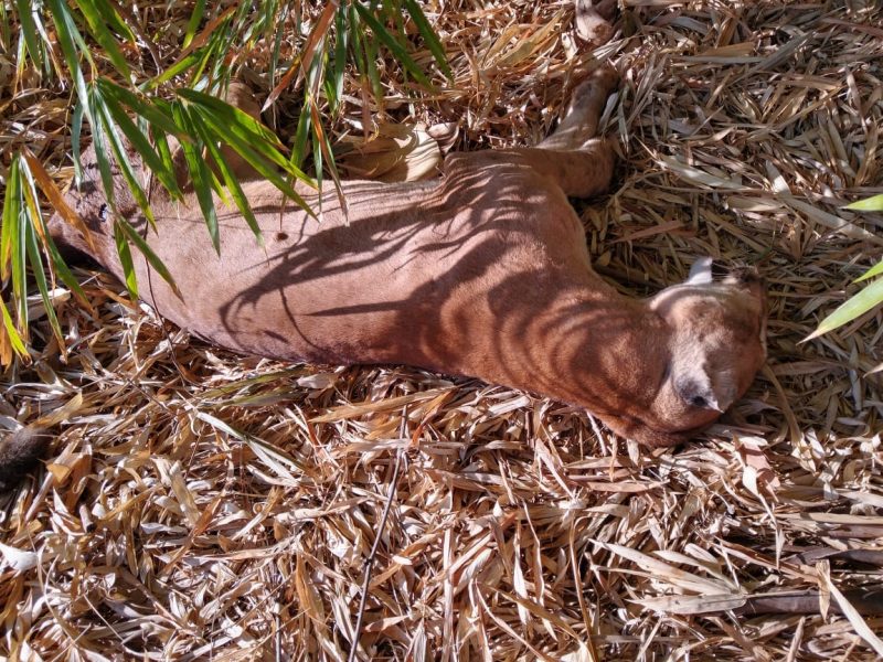 Com espécie ameaçada de extinção, onça-parda é encontrada morta com marca de tiro em Rancharia; veja VÍDEO