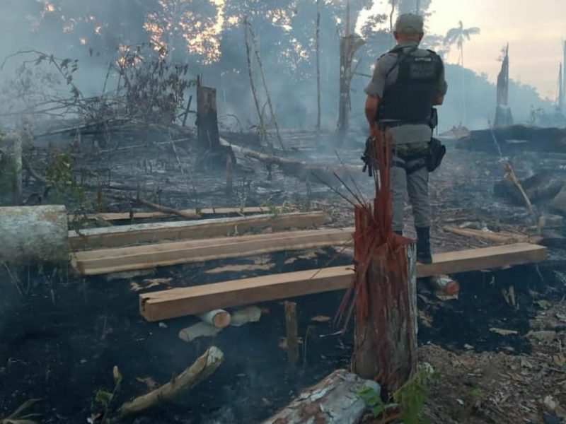 Dados de julho ainda não foram fechados pelo Instituto Nacional de Pesquisas Espaciais (Inpe), mas a parcial dos 30 dias mostra uma alta de 14,5% em relação ao mesmo mês de 2019 no bioma. Nesta quinta-feira (30), 1.007 focos foram contabilizados na região amazônica. Polícia flagra desmatamento e queimada em