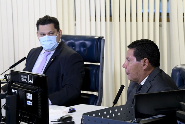 Vice-presidente da República participou de sessão sobre o tema no Senado. Segundo ele, Brasil deve mostrar resultados para ‘contra-atacar’ e liberar R$ 2,8 bilhões do Fundo Amazônia. Vice-presidente Hamilton Mourão (dir.) participa de sessão remota do Senado Federal ao lado do presidente do Senado, Davi Alcolumbre (DEM-AP) Marcos Oliveira/Agência Senado