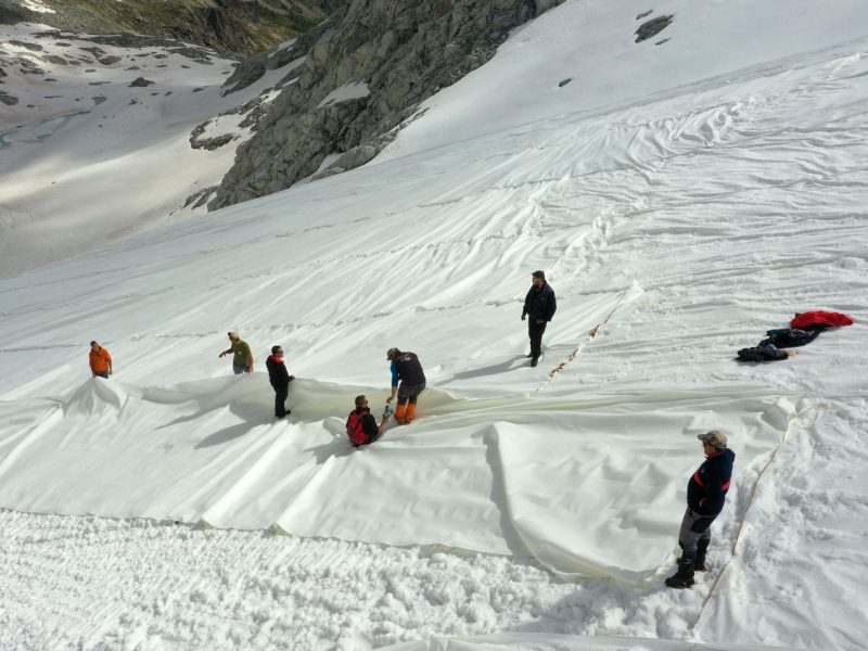 Itália embrulha geleira para proteger neve dos Alpes do aquecimento global