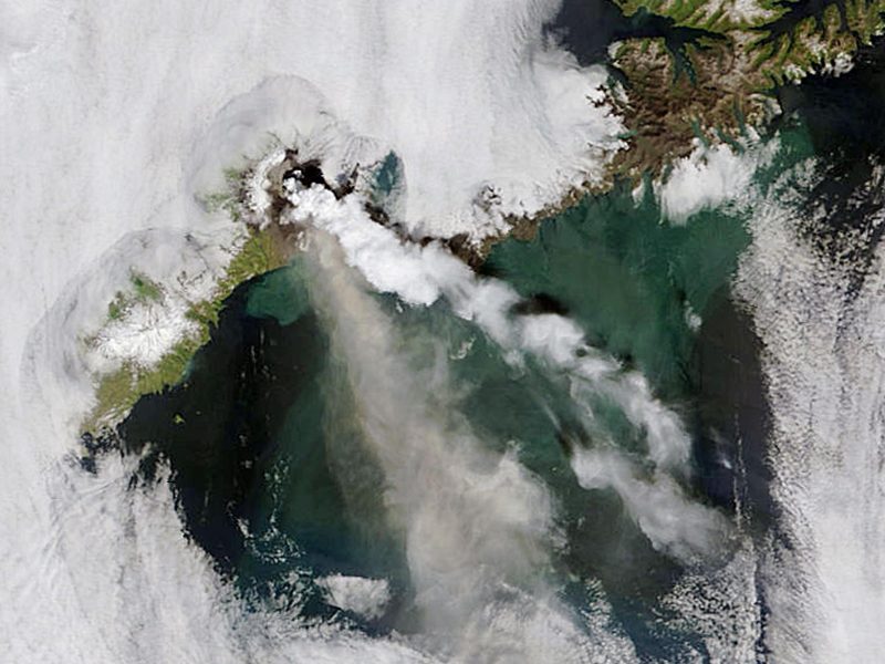 Atividade vulcânica gerou uma série de fenômenos observados no momento da queda de Júlio César, inclusive temperaturas mais baixas do que o normal e fome generalizada. Vulcão Okmok, no Alasca, lança nuvem de gases em julho de 2008 Handout / NASA / AFP O assassinato do governante Júlio César no