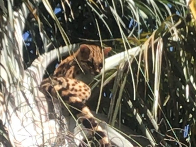 Jaguatirica é resgatada por bombeiros em cima de árvore de casa em MT