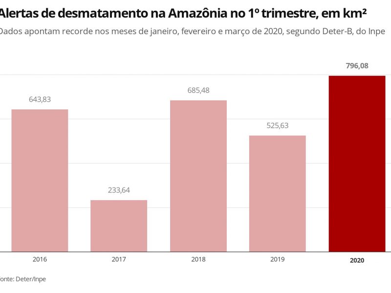 Alertas de desmatamento na Amazônia batem recorde no primeiro trimestre de 2020, mostram dados do Inpe