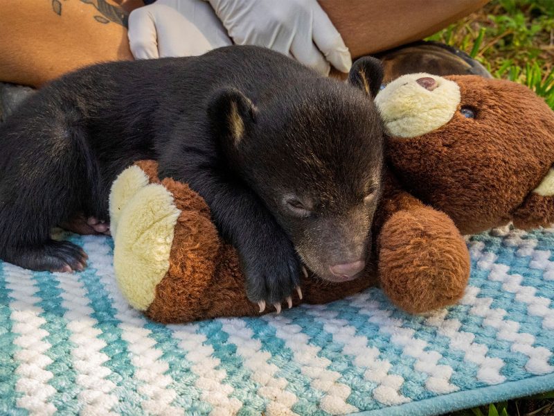 Filhote de urso-negro órfão se recupera em zoo na Califórnia