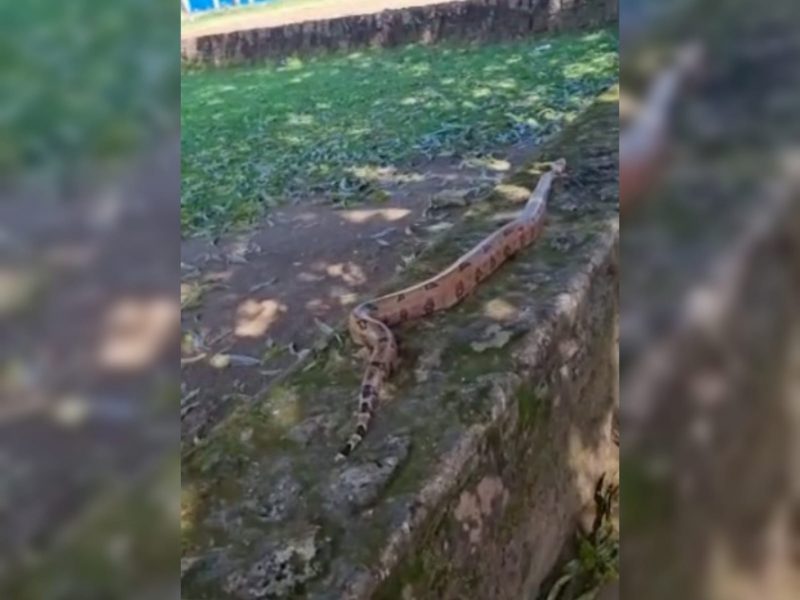Vídeo de jiboia em praça de Chapada dos Guimarães (MT) repercute como se ela tivesse surgido no local