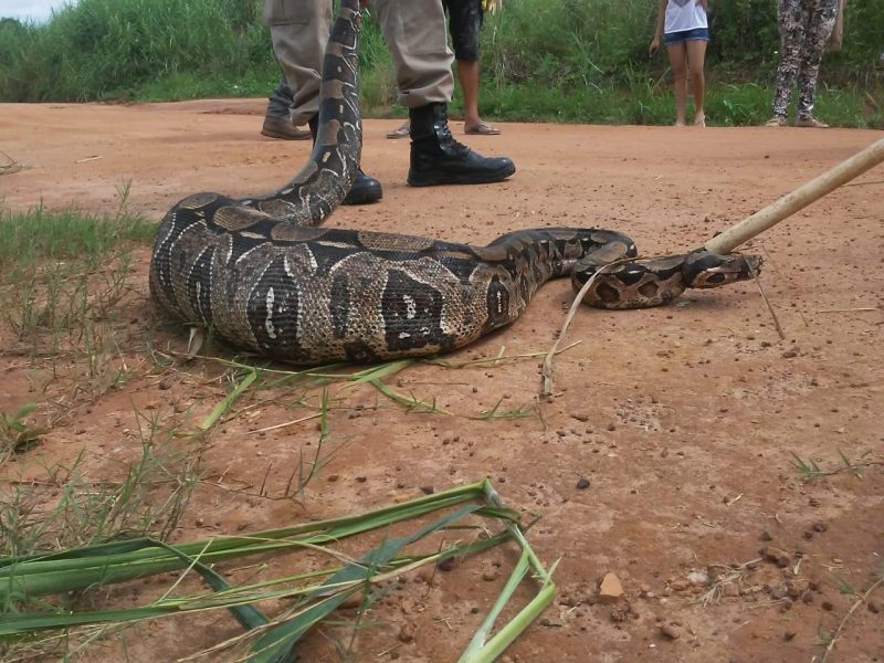 Trabalhador encontra jiboia de 2 metros ao roçar terreno baldio em Rondônia