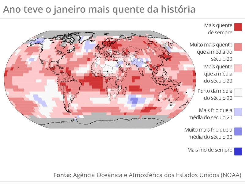 2020 tem o janeiro mais quente da história, diz agência dos EUA