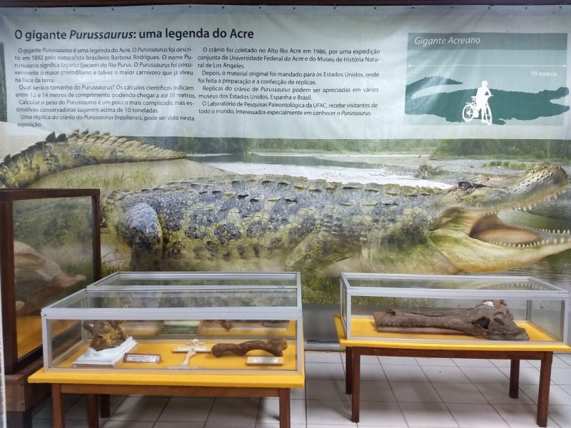 Duas réplicas do Purussauro são montadas em um galpão por pesquisadores da Ufac. Uma delas será enviada ao Museu da Amazônia em Manaus. Jacaré gigante viveu na Amazônia há milhares de anos Aline Nascimento/G1 A artista plástica Maria Alice Matusiak, de Porto Alegre (RS), tem em mãos a missão de