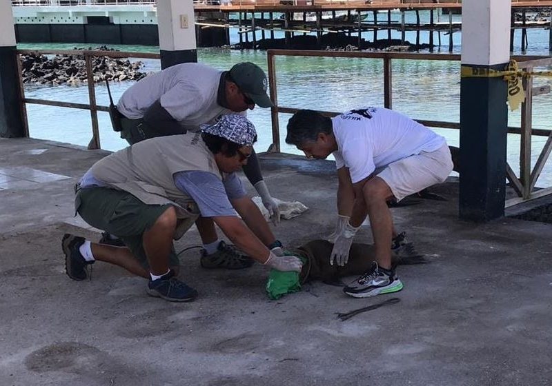 Filhote de leão-marinho preso em corda é resgatado nas ilhas Galápagos