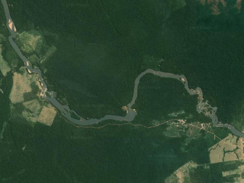 Usina Tabajara está prevista para ser construída em Machadinho D’Oeste (RO). Ibama informou que estudos ambientais da UHE estão em fase inicial de análise. Região onde está prevista a construção da Usina Hidrelétrica Tabajara, a cerca de 55 quilômetros da cidade de Machadinho D’Oeste. Google Maps/Reprodução Pesquisadores da Universidade Federal