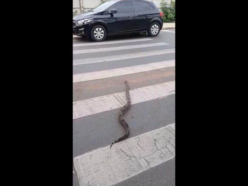 Cobra é flagrada atravessando avenida na faixa de pedestre em MT; veja vídeo