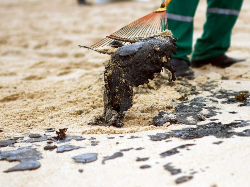 1.004 pontos do país já tiveram registros da poluição; destes, 570 já estão limpos e 434 seguem com vestígios esparsos. Quase cinco meses após o surgimento, as investigações ainda não apontaram a origem das manchas. Imagem mostra manchas de óleo retiradas da praia de Barra do Jacuípe, na Bahia, em