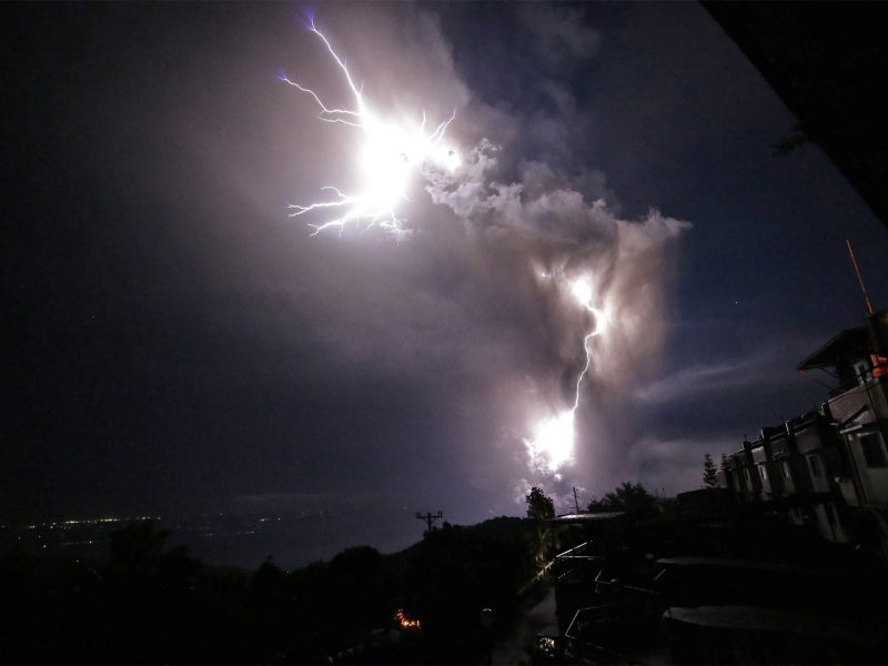 Região deve seu nome aos muitos vulcões localizados em seu entorno. E embaixo dela há também muitas placas em movimento: a maioria dos terremotos no mundo ocorre ali. Relâmpago vulcânico é visto em meio à nuvem de cinzas emitida pelo vulcão sobre Tagaytay City, na província de Cavite, nas Filipinas,