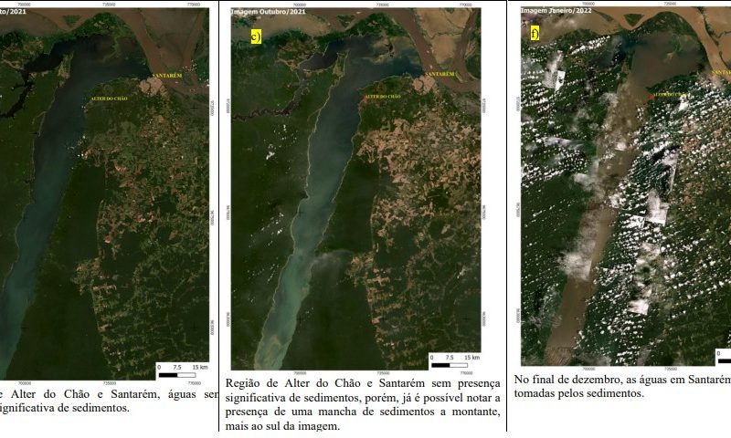 Técnicos compararam imagens do rio Tapajós colhidas entre julho de 2021 e janeiro de 2022. De acordo com a PF, garimpeiros despejaram 7 milhões de toneladas de rejeitos. A Polícia Federal concluiu que a mudança de cor nas águas do rio Tapajós em Alter do Chão, famoso destino turístico no