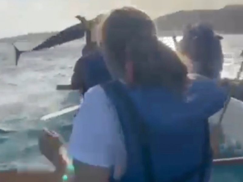 VÍDEO: golfinho faz acrobacia no ar, atinge canoa e derruba turista no mar em Noronha