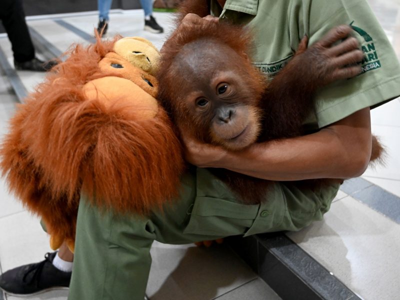 Depois de alguns meses de preparação, bebê orangotango será reintegrado ao seu habitat. Ele foi achado em uma mala no aeroporto de Bali, na Indonésia, em março deste ano. Bebê orangotango que foi localizado em mala de traficante será devolvido à natureza na Indonésia. Sonny Tumbelaka/AFP Autoridades ligadas à conservação