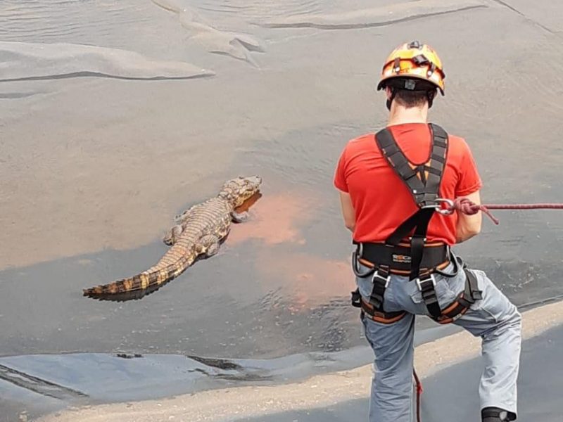 Foram necessárias técnicas de salvamentos em altura e terrestre para efetuar o resgate do animal, que depois acabou solto em seu habitat no Rio do Peixe. Jacaré foi capturado em usina sucroalcooleira em Paulicéia Corpo de Bombeiros O Corpo de Bombeiros resgatou na manhã desta terça-feira (3) um jacaré com