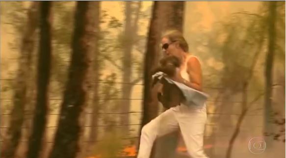 Ferimentos decorrentes da queimadura pioraram e o animal foi sacrificado; ele foi atingido por um dos incêndios que atingiram o leste da Austrália. Toni Doherty resgata um coala de um incêndio na Austrália Reprodução/TV Globo Morreu, nesta terça-feira (26), um coala que havia sido resgatado com vida de um incêndio