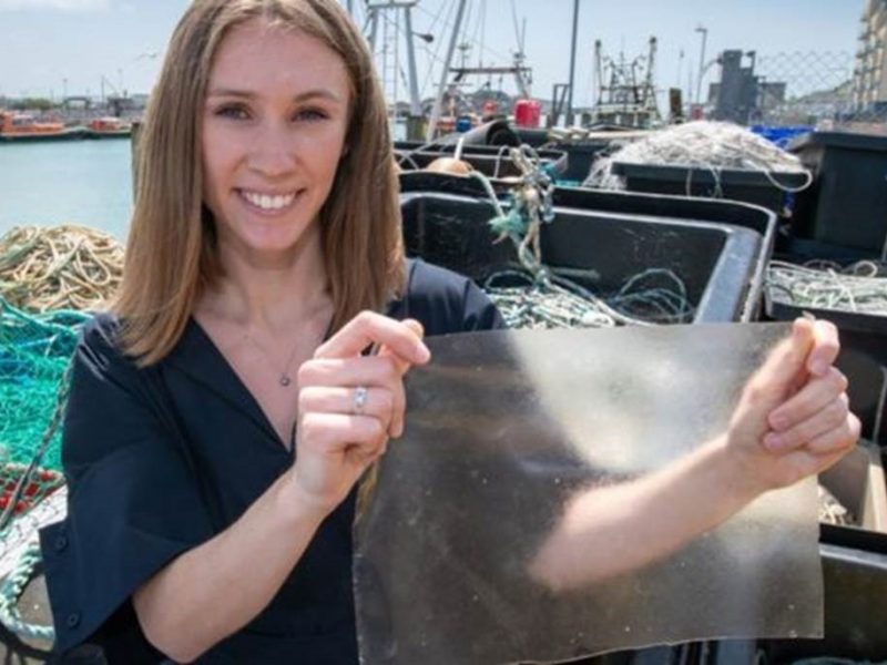 Britânica de 24 anos cria alternativa ao plástico feita de restos de peixe e ganha prêmio internacional