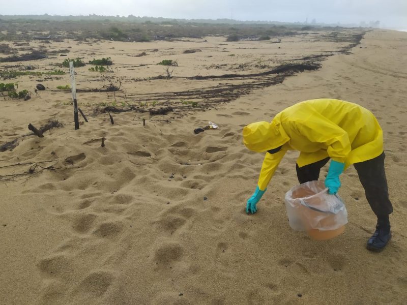 Fragmentos de óleo são recolhidos em praia de Aracruz, ES