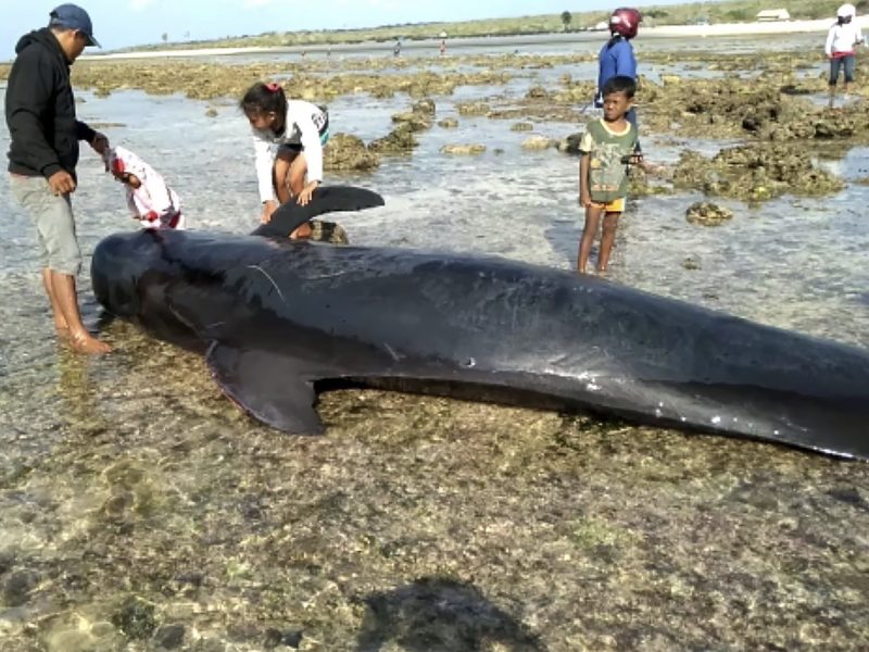 Na sexta-feira, moradores da localidade de Menia Village encontraram 17 baleias em uma praia próxima e conseguiram salvar dez delas. Moradores da região e oficiais marítimos verificam baleias encalhadas na costa de Menia Village, na Indonésia, em 11 de outubro. Yuven / AFP Foram encontradas 17 baleias-piloto encalhadas em uma