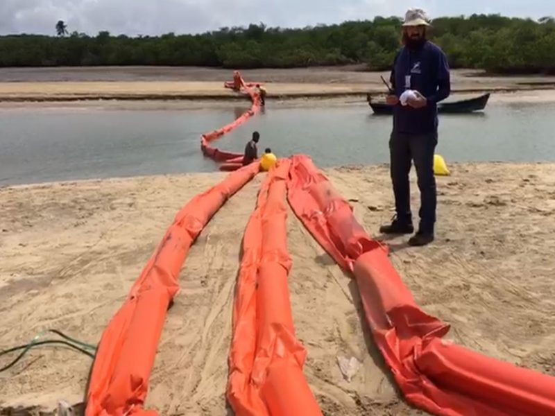 O equipamento foi alugado a uma empresa terceirizada, após impasse entre a administração estadual e a Petrobras. Barreiras de contenção são instaladas no Rio Vaza Barris Neste sábado (12), foram instalados 75 metros de barreiras de contenção por equipes da Administração Estadual de Meio Ambiente (Adema) no Rio Vaza-Barris, em