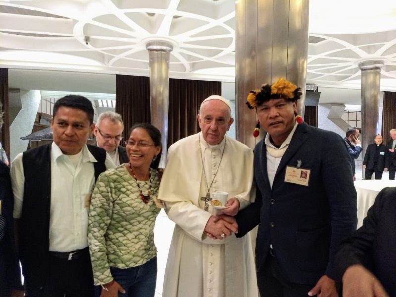 Em conversa com o G1, nos bastidores do Sínodo da Amazônia, Tapi Yawalapiti defendeu o direito de cada povo decidir quais atividades exercer em seus próprios territórios. Tapi Yawalapiti durante o Sínodo da Amazônia, ao lado de Papa Francisco Tapi Yawalapiti/Arquivo Pessoal Diante da proposta do governo do presidente Jair