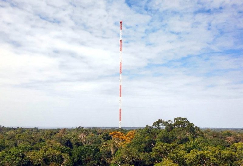 Poluição emitida na capital do Amazonas altera a atmosfera da floresta e prejudica a formação de nuvens e a incidência de luz do sol na mata, aponta projeto de cientistas brasileiros, alemães e americanos. The Amazon Tall Tower (ATTO), torre de mediação atmosférica em Manaus utilizada pelos cientistas do projeto