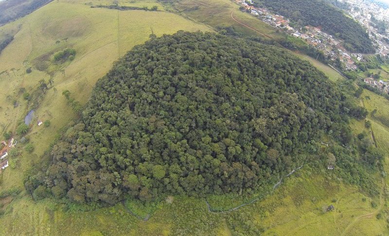 Neste sábado (28), população é convocada a participar de ação em local que estava depredado com lixo, esgoto e queimadas e, que agora passa a ser Área de Proteção Permanente. Vista aérea da Reserva Ambiental de Barbacena, que terá plantio de 4 mil mudas neste sábado Rodrigo Oliveira/Divulgação Neste sábado