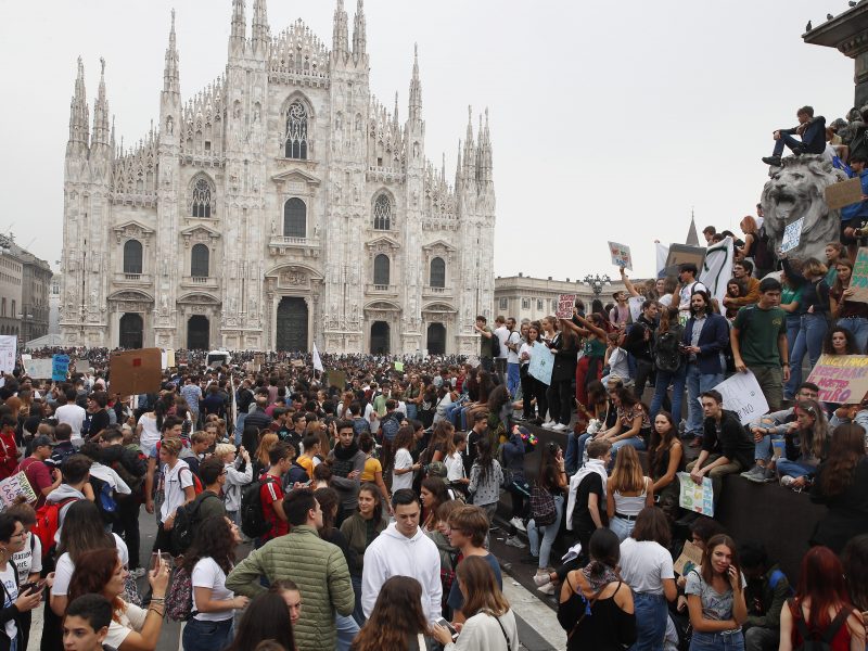 Pelo menos 10 países têm protestos nesta sexta-feira (27), como parte do movimento ‘Fridays for Future’, liderado pela jovem ativista Greta Thunberg. Eles pedem ações concretas para conter o aquecimento global. Estudantes protestam durante a greve global pelo clima em frente ao Duomo de Milão, na sexta-feira, 27 de setembro