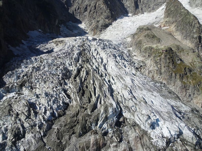 Derretimento acelerado devido ao calor acima da média neste ano ameaça vilarejo alpino de Courmayeur, na Itália. A geleira Planpincieux, no vale de Aosta, Itália, está derretendo a um ritmo mais acelerado. HO / COURMAYER Press Office / AFP A geleira Planpincieux, no vale de Aosta, o lado italiano do