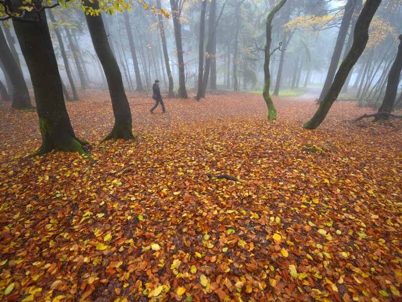Matas, que cobrem um terço do país europeu, têm sofrido com estiagens prolongadas e pragas. “Temos que agir com urgência. A mudança climática nos atingiu muito mais rápido do que o esperado”, diz ministra da Agricultura. Um homem caminha em uma floresta debaixo de névoa na montanha Feldberg, na região