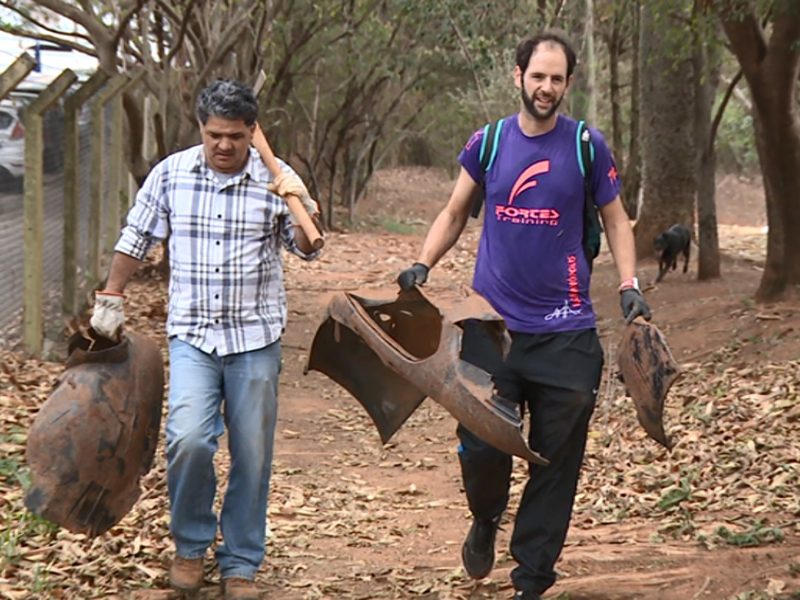 Mutirão no Dia Mundial da Limpeza recolhe até parachoque dentro de parque em Campinas
